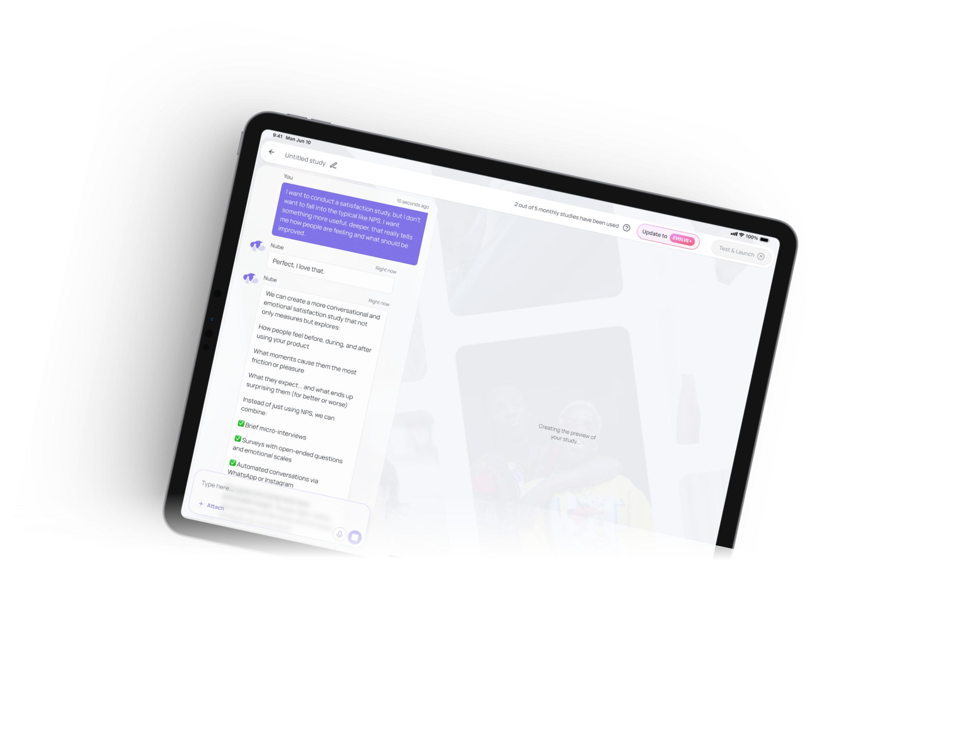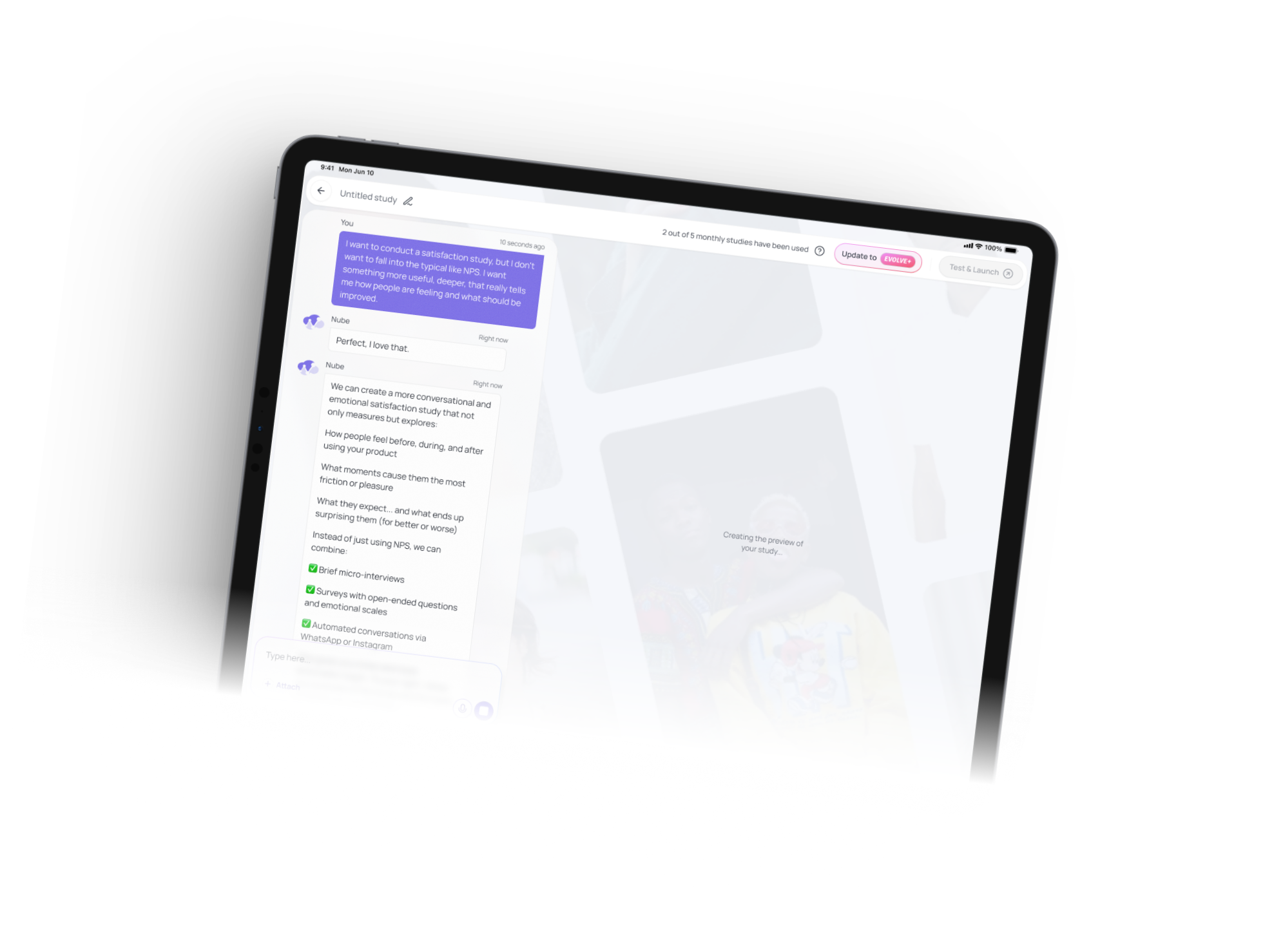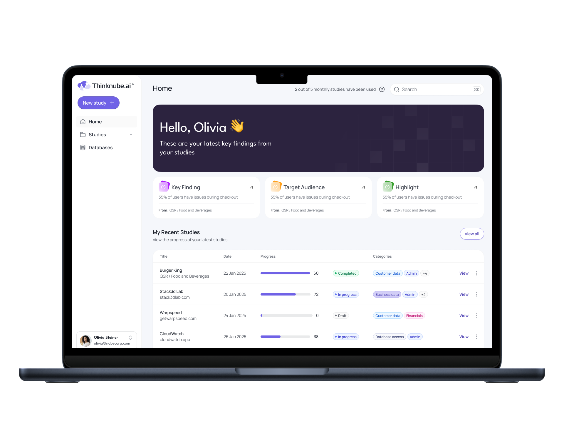 ThinkNube.ai artificial intelligence platform enables you to incorporate insight driven customer research into everyday business decisions by dramatically reducing the cost, time, and friction of traditional research programs.