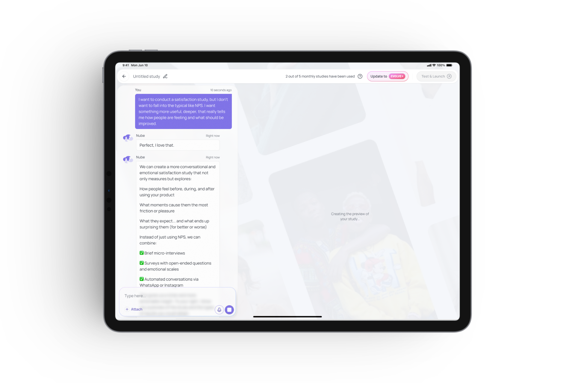ThinkNube.ai artificial intelligence platform enables you to incorporate insight driven customer research into everyday business decisions by dramatically reducing the cost, time, and friction of traditional research programs.